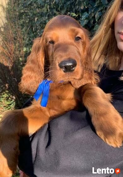 Seter Irlandzki Szczenięta , trzy przepiękne pieskiur.05.11.2019 r. czekają na kochających właścicieli .
