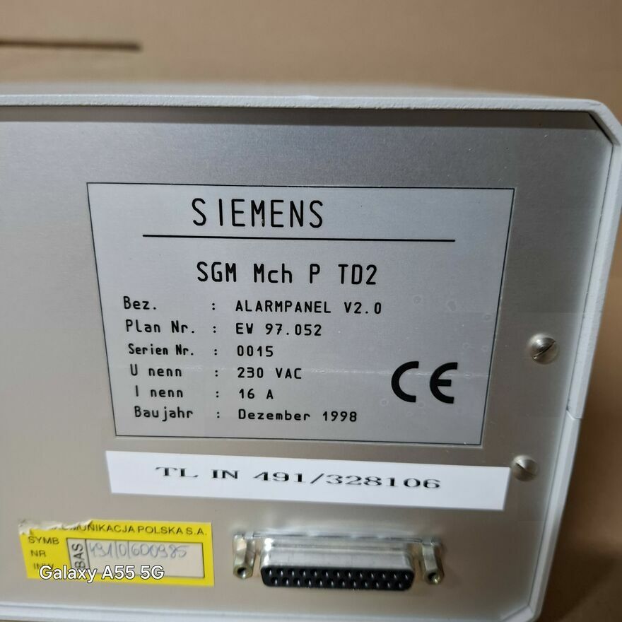 panel alarmowy Siemens SGM Mch P TD2.Jest to urządzenie, które służy do monitorowania i obsługi systemów alarmowych. Zgodnie z etykietą, jest to model V2.0, wyprodukowany w grudniu 1998 roku. Tego typu panele są często wykorzystywane w systemach automatyki przemysłowej, w tym w systemach ochrony przeciwpożarowej, gdzie umożliwiają monitorowanie procesów i alarmów. Gratka dla kolekcjonera