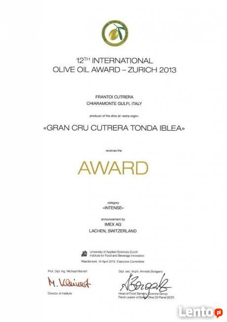Najsłynniejszy ekspert w dziedzinie oliw - Marco Oreggia, w swoim przewodniku Guida Flos Olei uznał oliwę Primo Frantoi Cutrera jako najlepszą oliwę na świecie. Wybrał ją spośród 600 innych oliw, 40 krajów .Najlepsza oliwa z oliwek extra virgin.