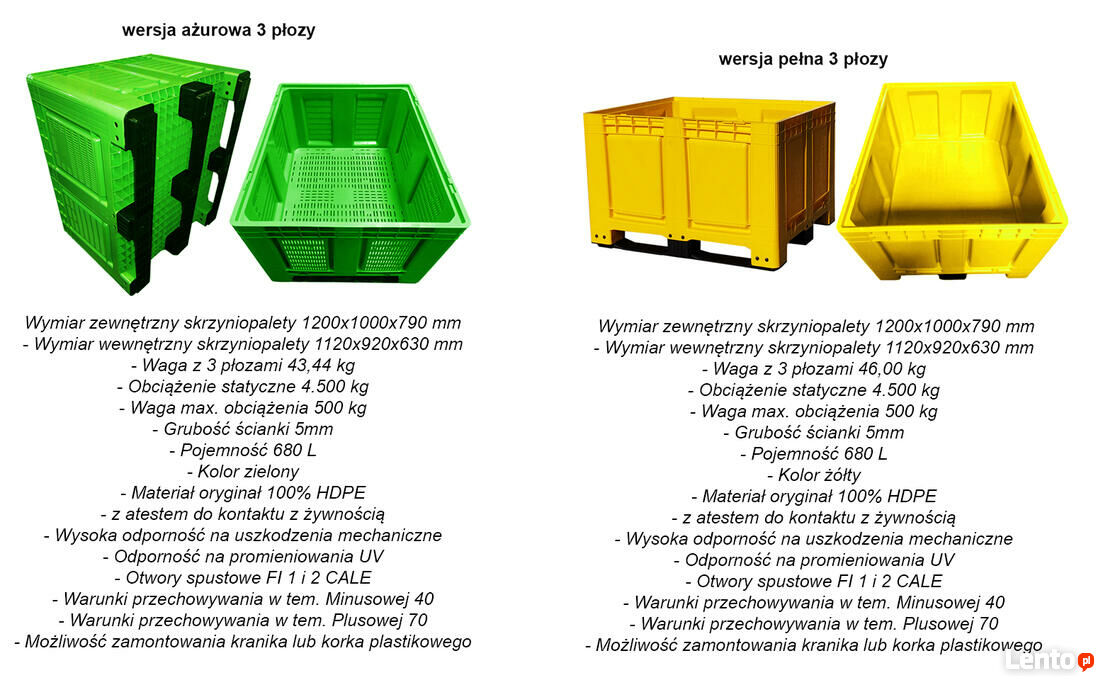Mam dostępne z świeżej produkcji Skrzyniopaletę ażurową na 3 płozach i Big Boxa na 3 płozach w kolorach jak na poniższym zdjęciu.Cena po ustaleniu ilości i lokalizacji dostarczenia