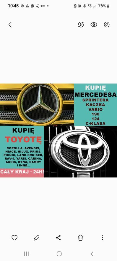 Skup aut MERCEDESÓW Mercedes TOYOT Toyota Avensis Sprinter A