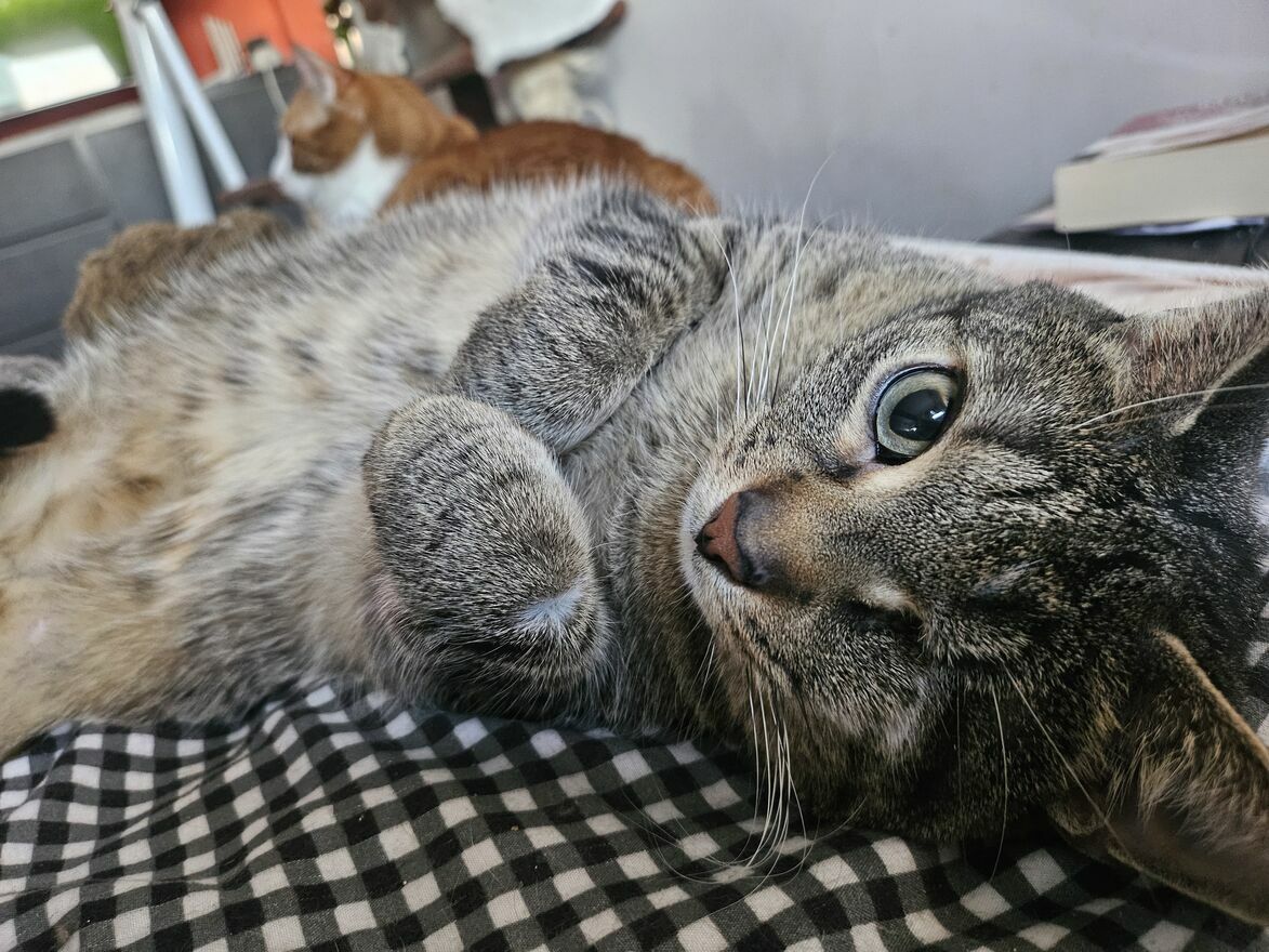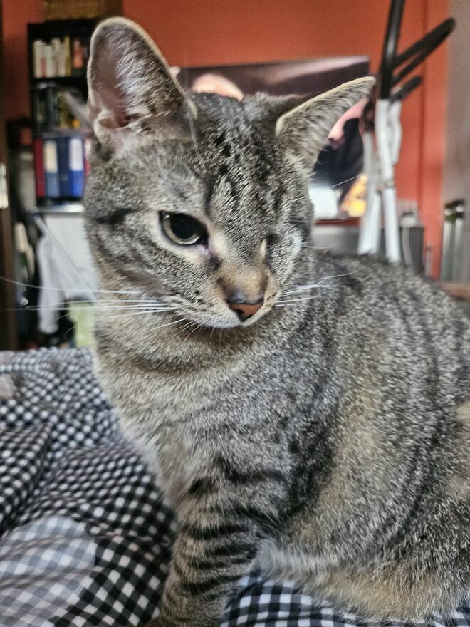 Lala ️ nadal szuka domku bezpiecznego, stabilnego, kochającego...Lala jest śliczną 4-letnią burasią. Nie ma jednego oczka, straciła je w dzieciństwie wskutek nieleczonego kociego kataru. Jest zdrowa, ma komplet szczepień i ujemne testy. Oczywiście jest po kastracji. Jest grzeczną kocią, spokojną. Lubi głaski, przychodzi na mizianki. Może zostać jedynaczką. Lala mieszka w Warszawie w towarzystwie innych kotków i pieska . Bez wpadek korzysta z kuwetki.
