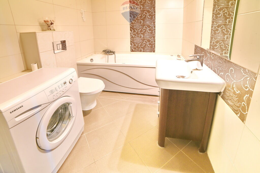 Łazienka - wanna, umywalka, szafka pod umywalkowa, pralka, grzejnik