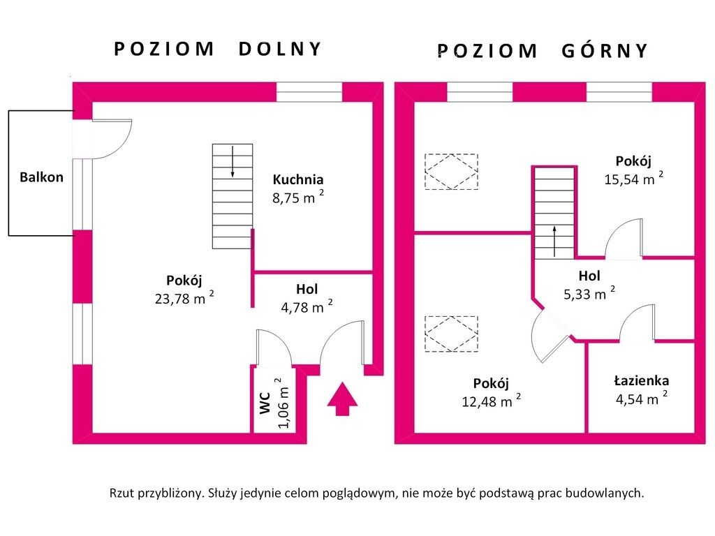 Mieszkanie dwupoziomowe, składające się z następujących