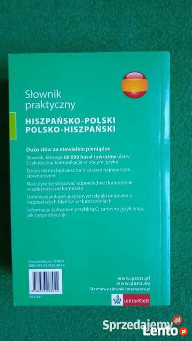 "ogłoszenie widoczne = Aktualne"Słownik praktyczny hiszpańsko polski i polsko hiszpański, 60 tysięcy haseł i zwrotów. Słownik w bardzo dobrym stanie bez podkreśleń, wpisów i stempli biblioteki. Miękka okładka, 1130 stron.