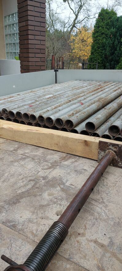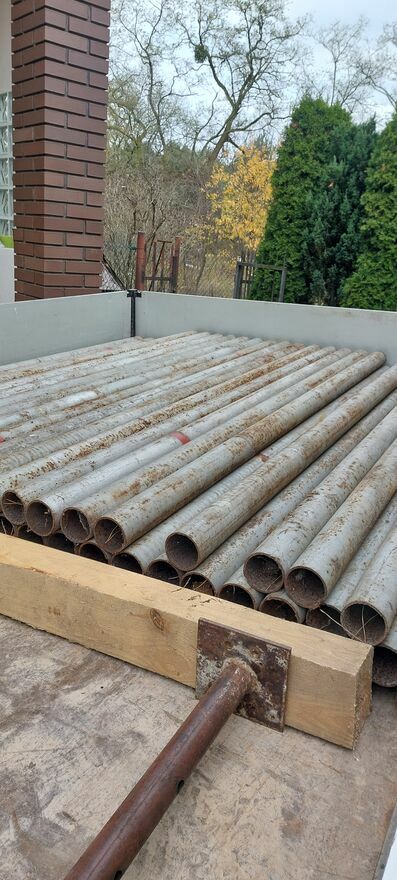 Słupki stalowe - 2,20 m wysokie - po instalacji centralnego ogrzewania w szklarni - średnica ok. 3 cale/ 8 cm.Do wykorzystania do ogrodzenia.