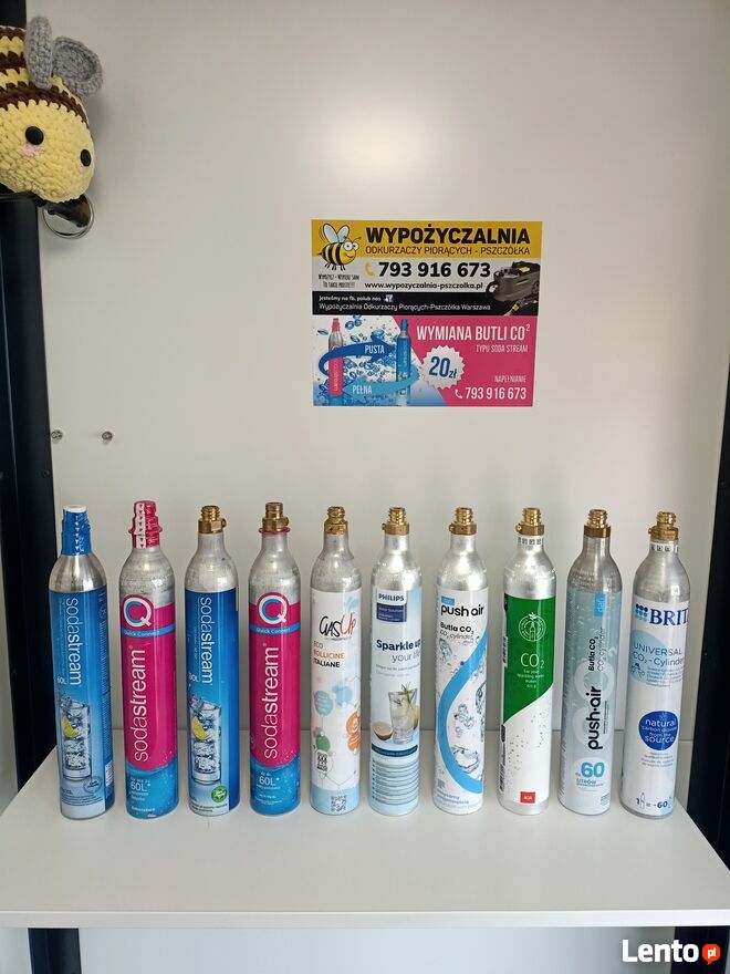 Butle napełniane są dwutlenkiem węgla klasy spożywczej, idealnym do gazowania wody w domu.