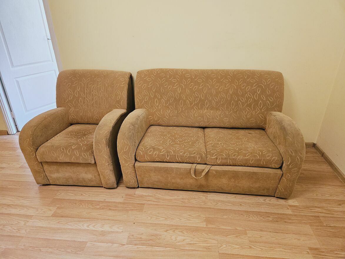 Sprzedam sofę dwuosobową rozkładaną wraz z fotelem.Wymiary sofy: 145x100