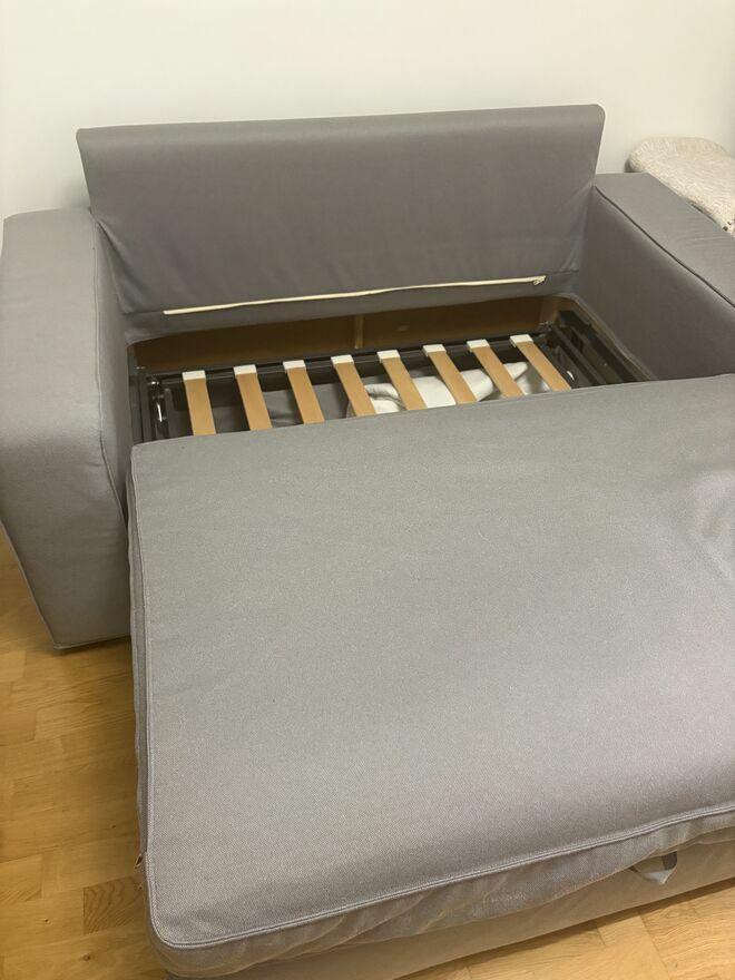 Cześć! Na sprzedaż wystawiam rozkładaną sofę Ikea. Wymieniłam jej pokrowiec, więc sofa jest jak nowa. Nie ma żadnych śladów użytkowania (dlatego dodaję zdjęcia z przybliżenia), stała w zasadzie nieużywana. Planuję zmianę wnętrza i mam nadzieję, że sofa jeszcze długo komuś posłużyć :)Transport proszę zorganizować we własnym zakresie. Odbiór Warszawa Mokotów