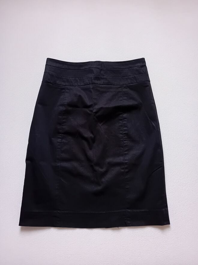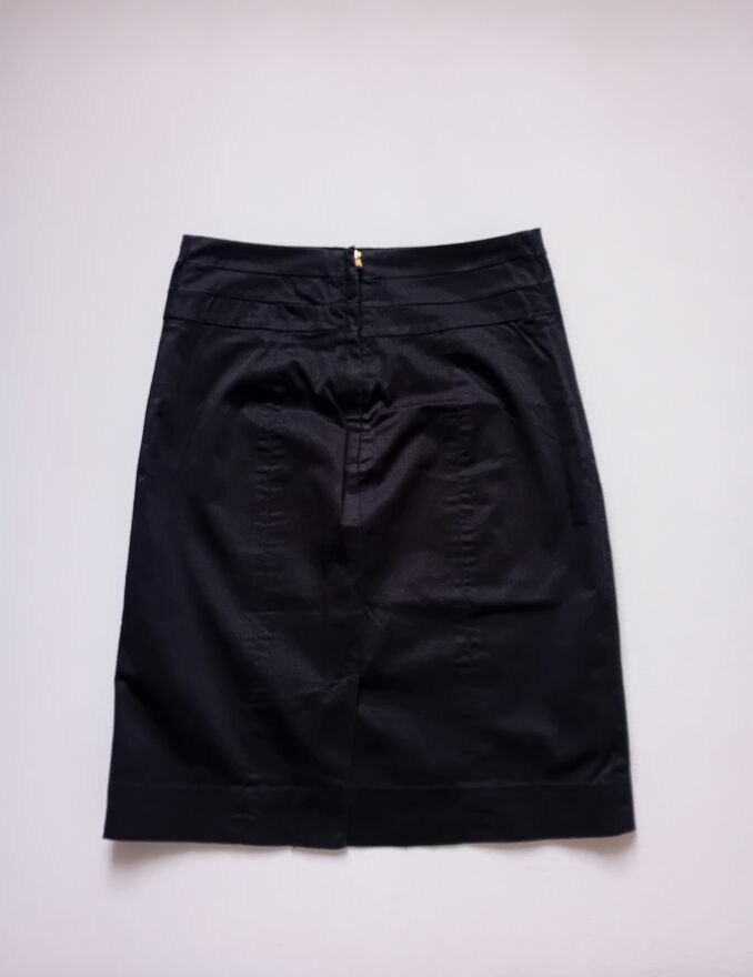 Spódnica ołówkowa w kolorze czarnym, używana. Doskonała na formalne okazje i do biura. Zapewnia elegancki i profesjonalny wygląd.