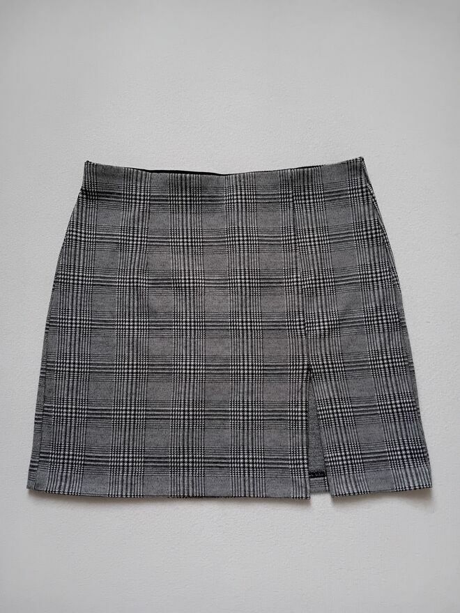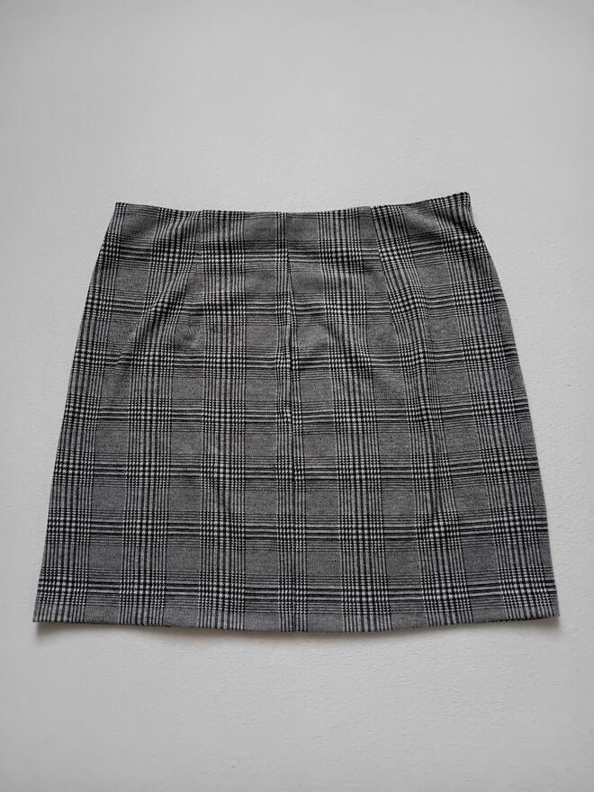 Krótka spódnica w kratkę w kolorze szarym. Doskonale sprawdzi się na co dzień. Klasyczny design w szarym odcieniu.