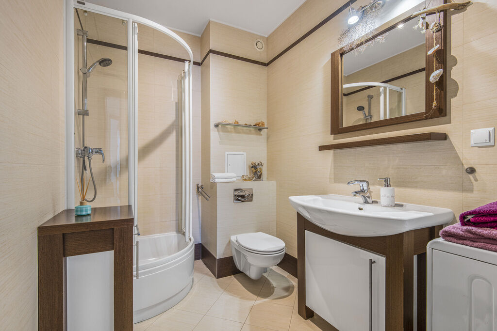 - łazienka (4,8 m2) - elegancka i stylowa, z prysznicem, umywalką,