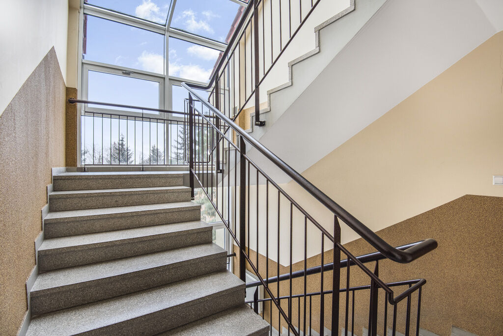 znajduje się na drugim pietrze w 3-piętrowym budynku (trzy lokale na