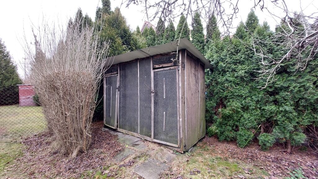 która wymaga rozbiórki. Teren jest w pełni ogrodzony, z furtką