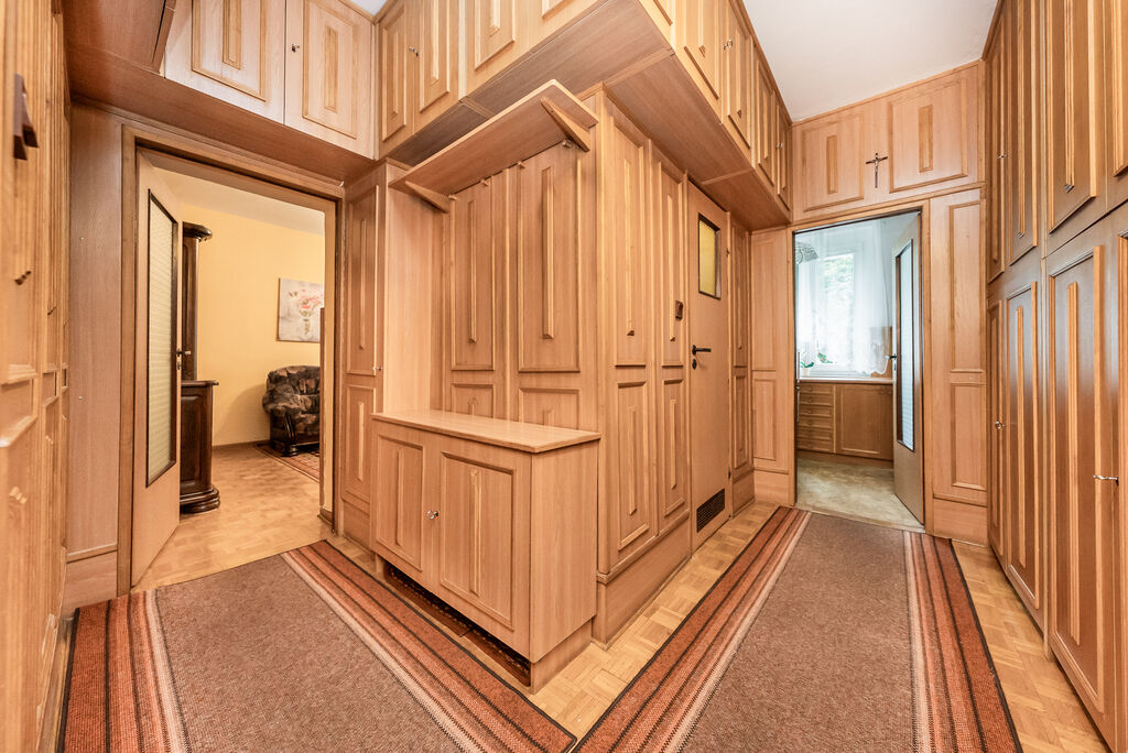 przedpokoju znajdziemy sporo szafek, wieszak na ubrania, a także