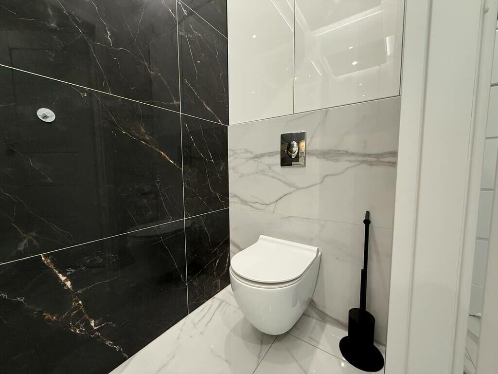 Łazienka oraz oddzielne WC zostały wykończone w najwyższym