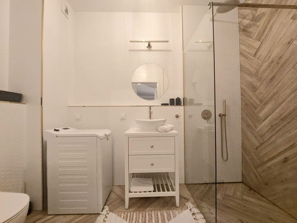 - łazienka - przestronna, z prysznicem, umywalką z okrągłym