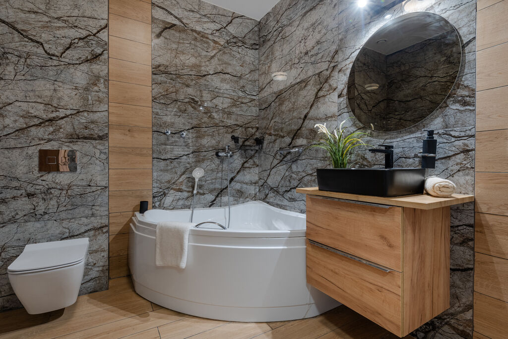 – Łazienka – komfortowa, urządzona w nowoczesnym stylu.