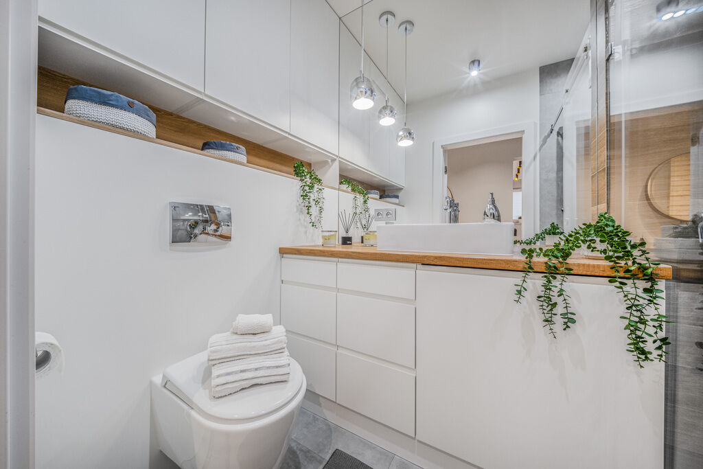 Łazienka z kabiną prysznicową– elegancka, w nowoczesnej