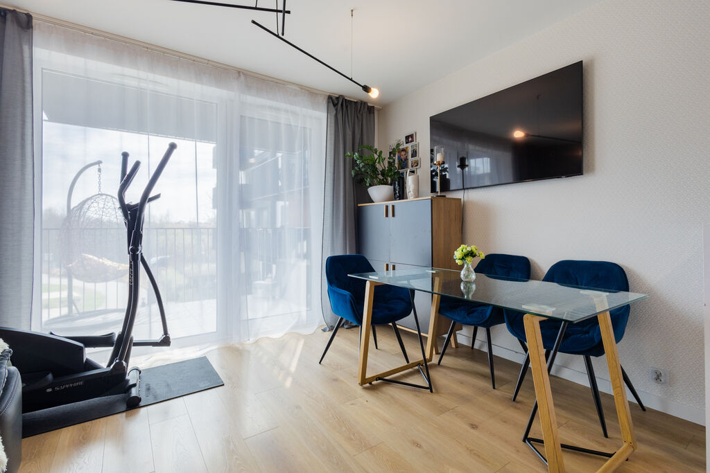 Układ mieszkania:Salon z aneksem kuchennym i wyjściem na balkon