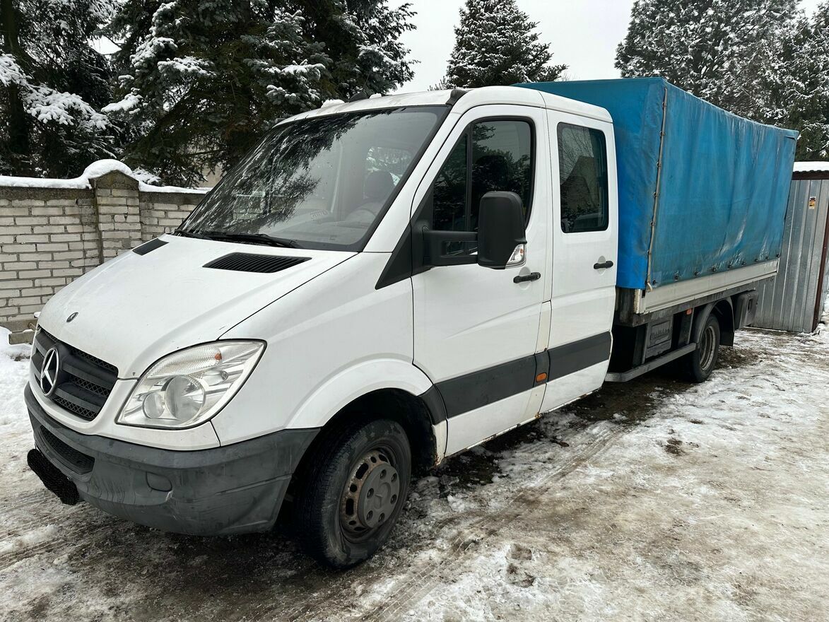 Sprinter 515 CDI, podwójna kabina, 7 osobowy, DMC 3,5 tony, najdłuższy rozstaw osi, największa skrzynia ładunkowa, stelaż + plandeka.Opony letnie i zimowe.