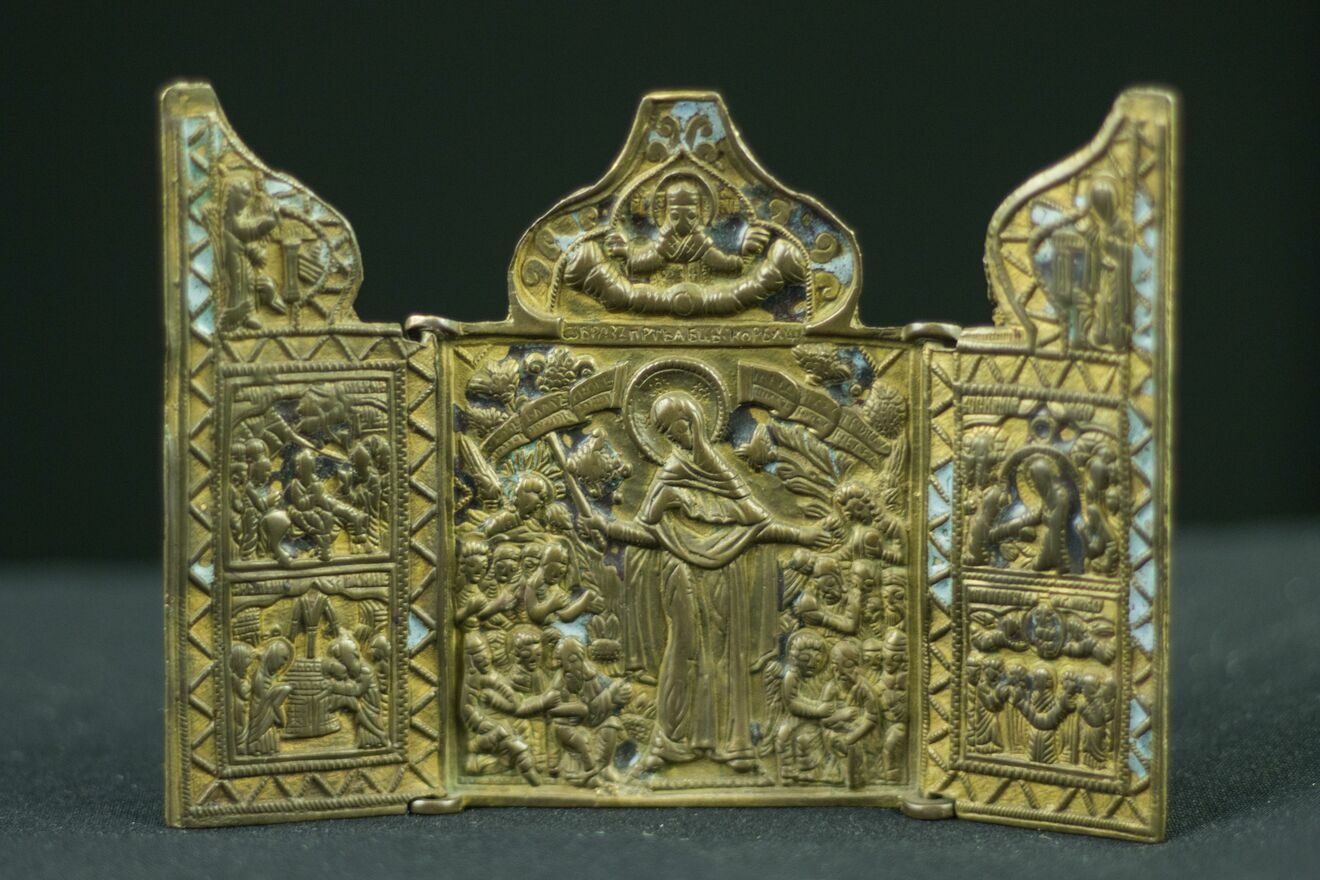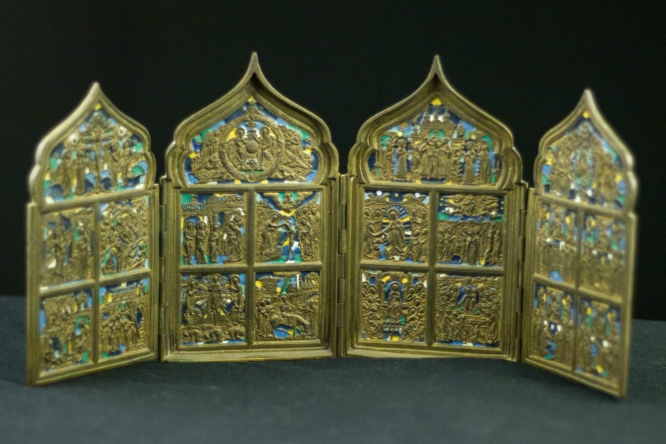 5. Tryptyk Ikona Podróżna EMALII. Wymiary; 18 x 10,5 po rozłożeniu 41cm.
