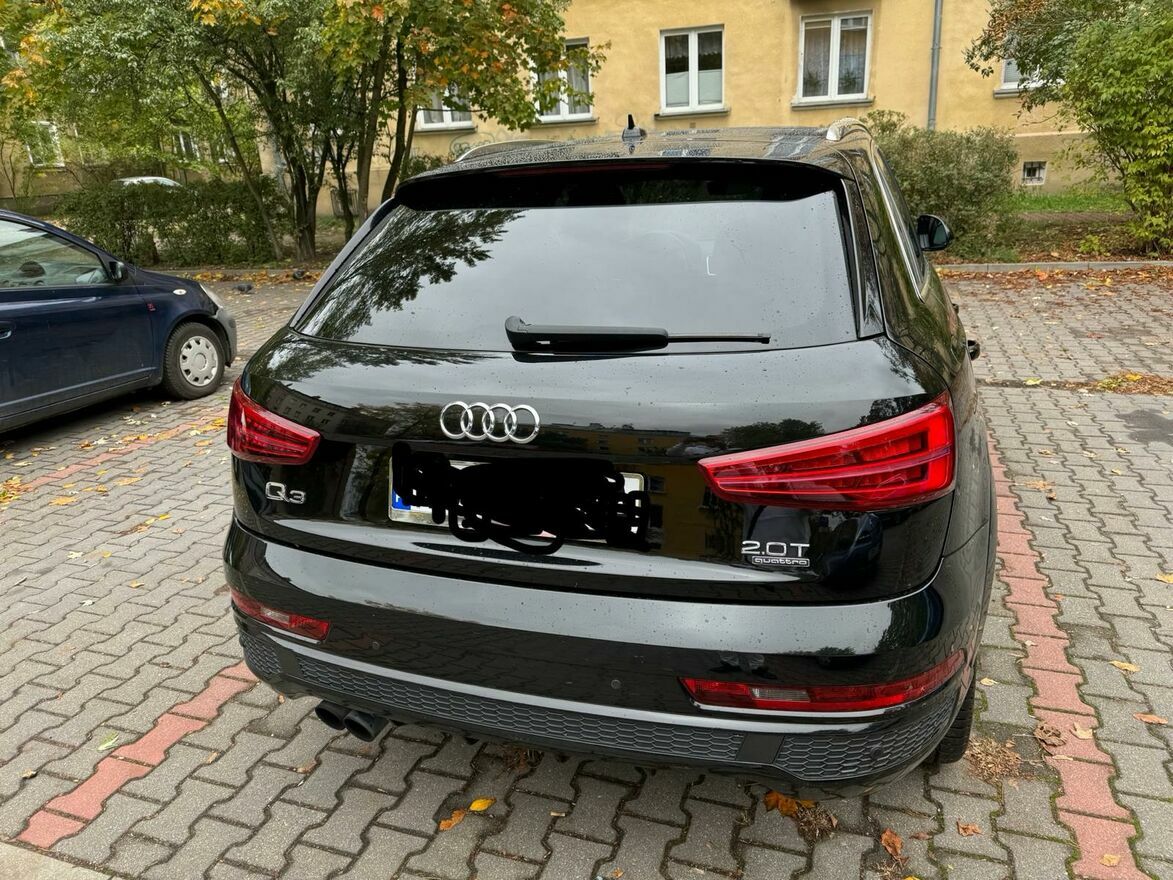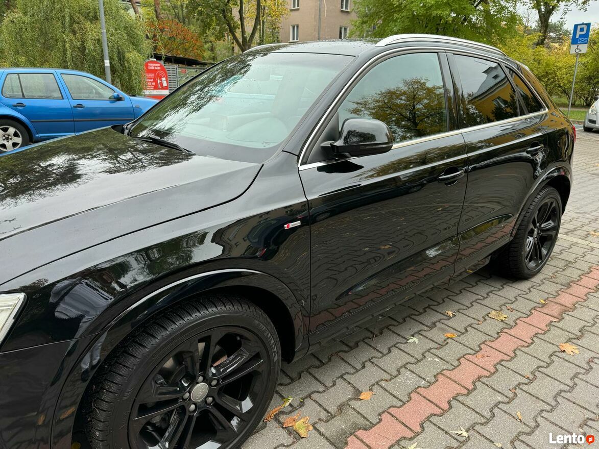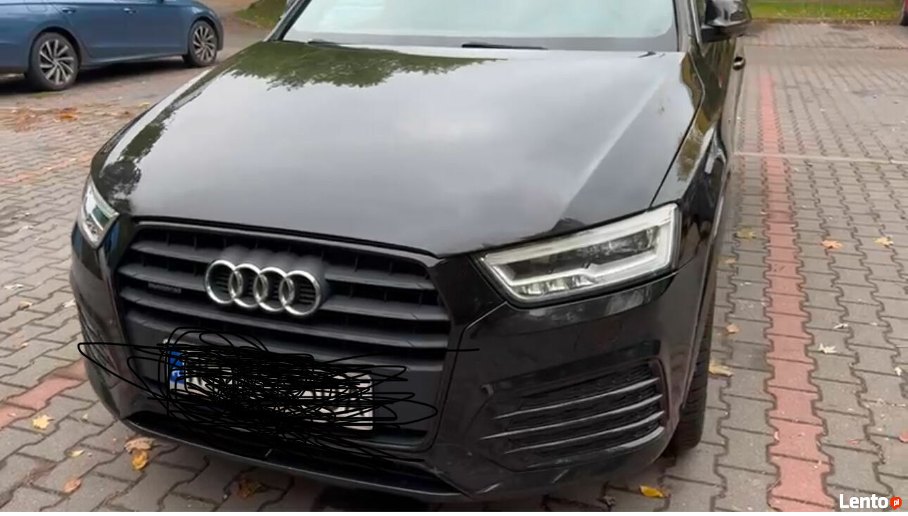 Sprzedam Wyjątkowego Audi Q3 2016r czyli najbogatszej wersji w czarnym perłowy kolorze, posiadającym zewnętrzny pakiet S-line uważam najładniejszym wzorem 19 calowych felg w tym modelu kolor czarny połysk opony całoroczne również posiadam letnie Audi jest napędzany dwulitrowym silnikiem benzynowym o mocy 220 KM co w połączeniu z napędem quattro oraz automatyczną skrzynią biegów zapewnia nam dyspozycję tej mocy w każdych warunkach.Samochód jest oszczędny w eksploatację ,,chodzi mi kiedy włączamy tempomat ,,szczegółów udzielę podczas rozmowy tel ,,