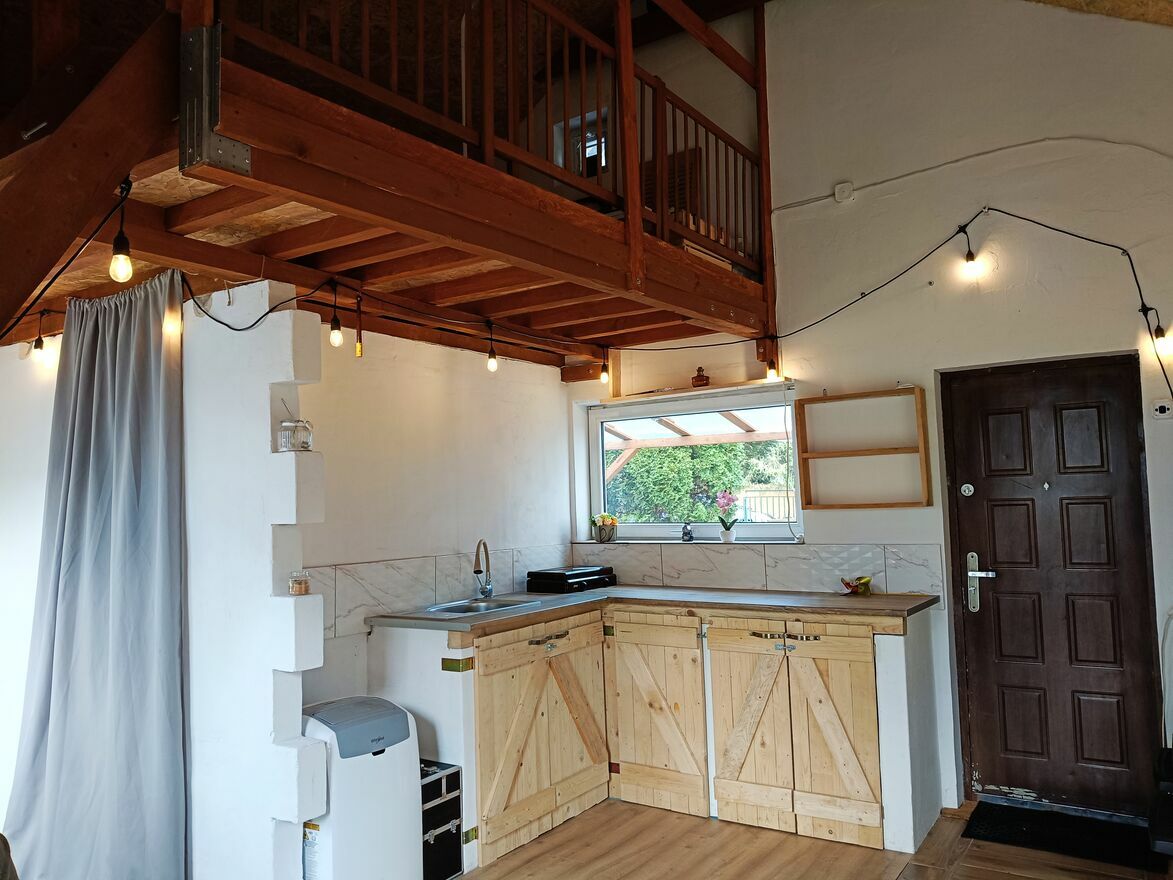 Sprzedam piękną działkę Rod w rustykalnym stylu z drewnianą antresolą i kuchnią otwarty salon,oraz łazienka .Duży taras