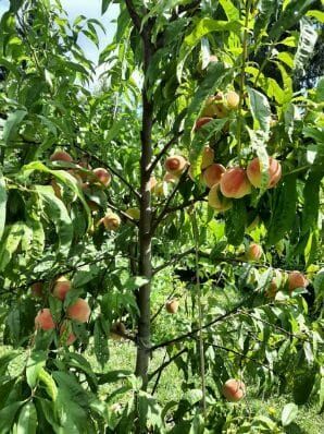 Ogród obsadzony jest różnymi pięknymi roślinami ozdobnymi i owocowymi, winoroślą. Drzewa brzoskwini, wiśni, śliwy.