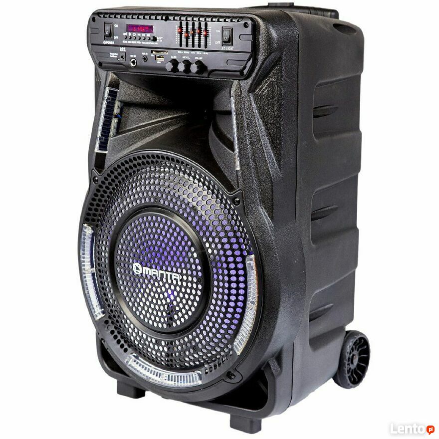 Nowy sprzedam w cenie 200 zł ( cena w sklepach ok 370 zł)Głośnik Karaoke Power Audio Manta SPK5033 z mikrofonem,Marka: Manta, Moc: 80W Szczytowa, Zasilanie: 110-240V, 50/60Hz Wbudowana bateria, Odtwarzanie: MP3, WAV, WMA, Komunikacja: Bluetooth 5.1, TWS