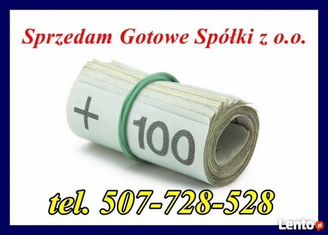 Zapraszamy do zapoznania się z naszą ofertą : Posiadamy w naszej ofercie szeroki wybór spółek z 2013 roku w cenie 6000,00 zł brutto , kapitał zakładowy 5.000,00 zł ,kompletna dokumentacja , CIT8/VAT/UE i sprawozdania finansowe za 2013 rok składane na bieżąco , Spółki zarejestrowane w 2014 roku z Kapitałem Zakładowym 5.000,00 zł w cenie już od 4500,00 zł , więcej ofert znajdziesz na www.biurro.com lub zadzwoń a dowiesz się więcej tel. 507 - pokaż numer telefonu - lub 728 - pokaż numer telefonu - email: biuro@biurro.comSprawdź zainteresowanie tym ogłoszeniem