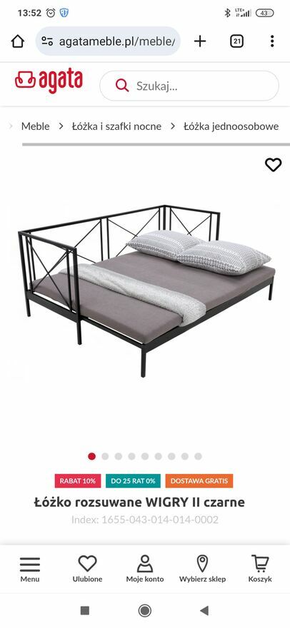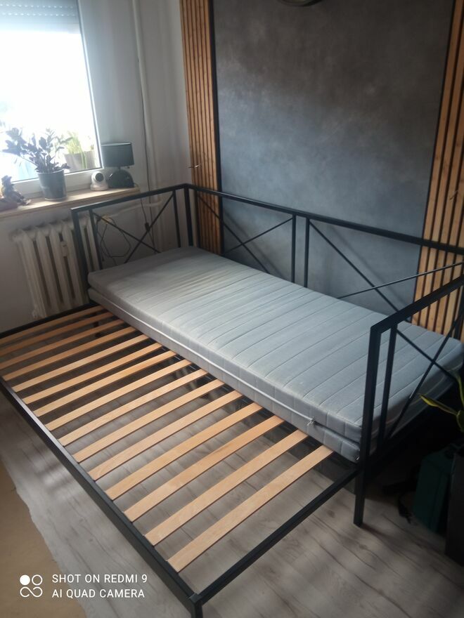 Sprzedam łóżko rozsuwane. Minimalistyczny styl, lekkie, z możliwością spania, po rozłożeniu powierzchnia spania to 160x200m. Kupione w Agata meble. Stelaż kompletny, w bardzo dobrym stanie.Materac bez plam, ma lekkie zaciągnięcia, można usunąć co jakiś czas maszynką-taki typ tkaniny na materacu, która przy używaniu się tak supelkuje. Są suwaki więc można zdjąć obicie i odświeżyć. Łóżko używane ale w dobrym stanie. Nowe kosztuje 2160zl w Agata meble.Sprawdź zainteresowanie tym ogłoszeniem
