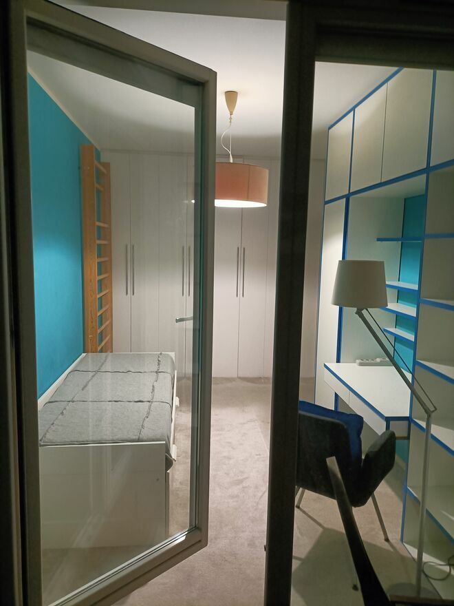 Bardzo miłe sąsiedztwo. Cisza i spokój. Mieszkania od wnętrza osiedla sprawia, że nawet zimą jest przyjemnie i ciepło. W pokoju w ramach wyposażenia rozkładana sofa, 3 krzesła hokery, stół i krzesła, szafka na DVD, szafki wiszące na książki. W sypialni regał z biurkiem, rozkladane łóżko, szafa w zabudowie. Meble IKEA lub na zamówienie.