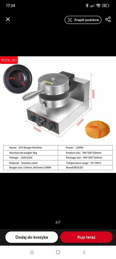 Sprzedam nową maszynę do ufo burgerów nowa, zapkowana. Nowa