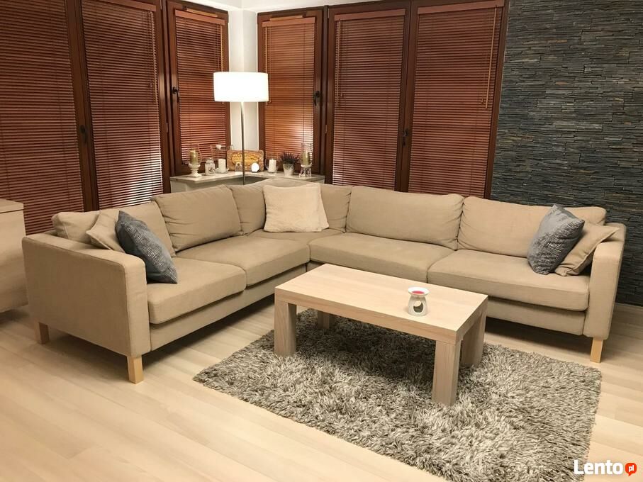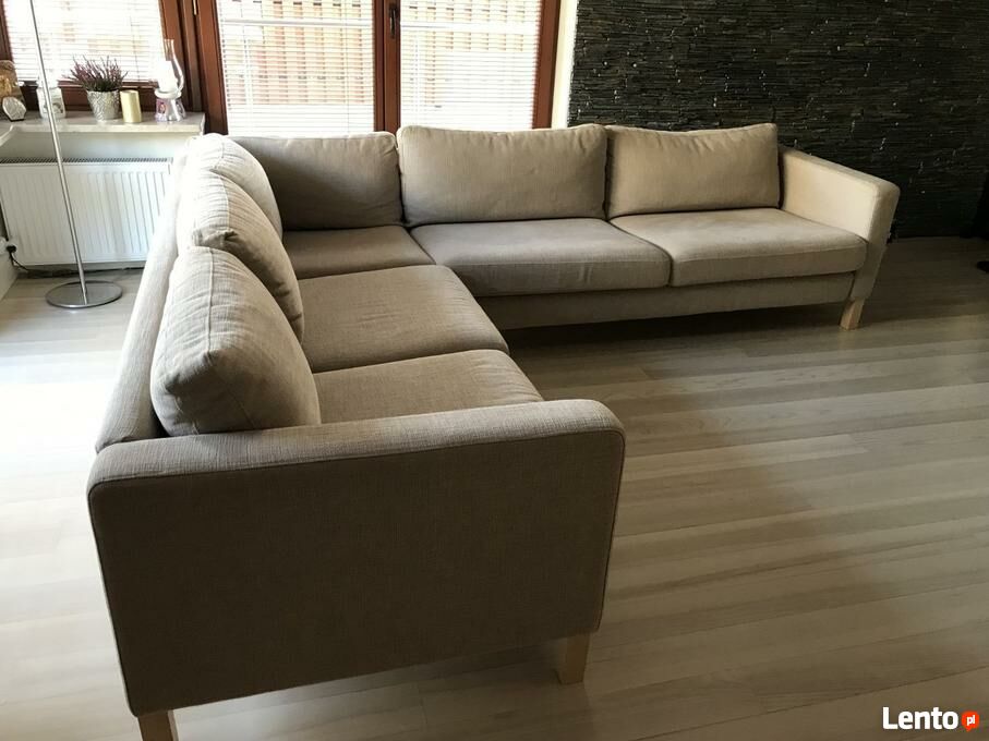Sprzedam nowoczesny narożnik IKEA Karlstad. Kolor beżowy, wszystkie pokrowce zdejmowane, zamykane na suwak, z możliwością prania.Wymiary: 283 cm x 242 cm ; wysokość 65 cm, głębokość 90 cm.Mebel do odbioru na warszawskim Zaciszu.