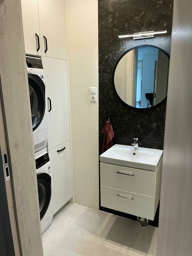 - Kuchnia oraz łazienka w pełni wyposażona w wysokiej klasy sprzęt AGD marki Electrolux (piekarnik, płyta indukcyjna, zmywarka, lodówka, okap, pralka, suszarka)