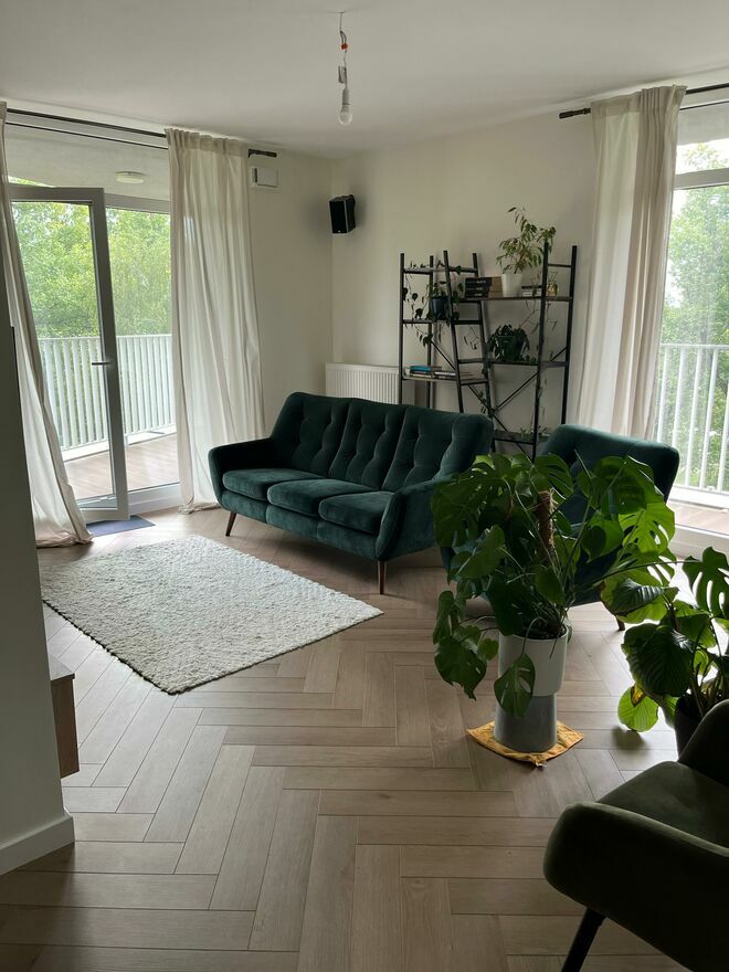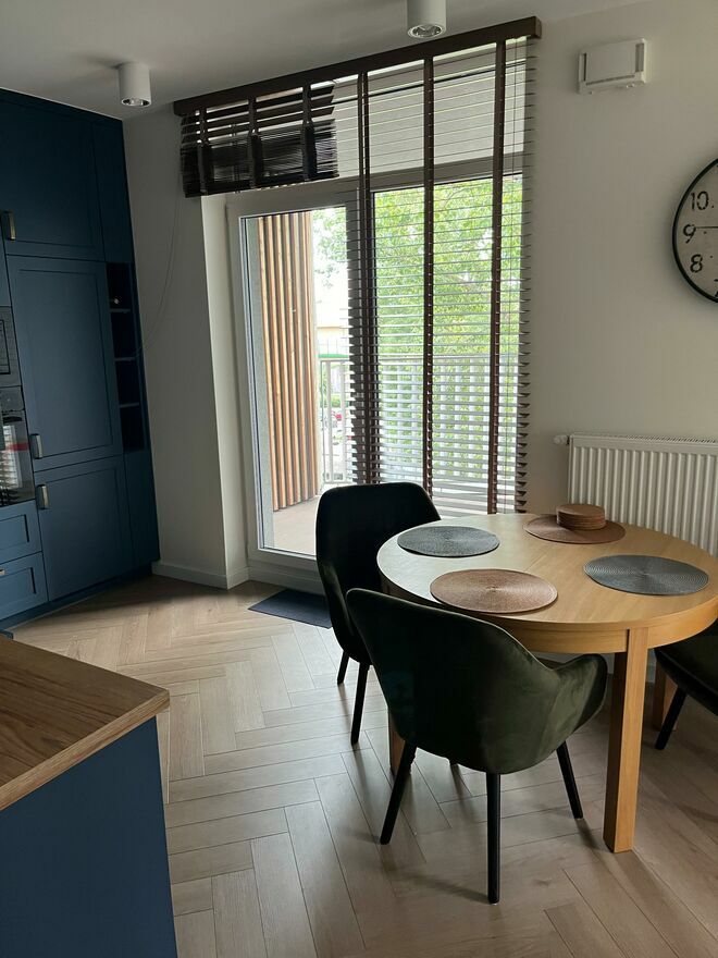 - Przestronny salon z aneksem kuchennym i wyjściem na balkon