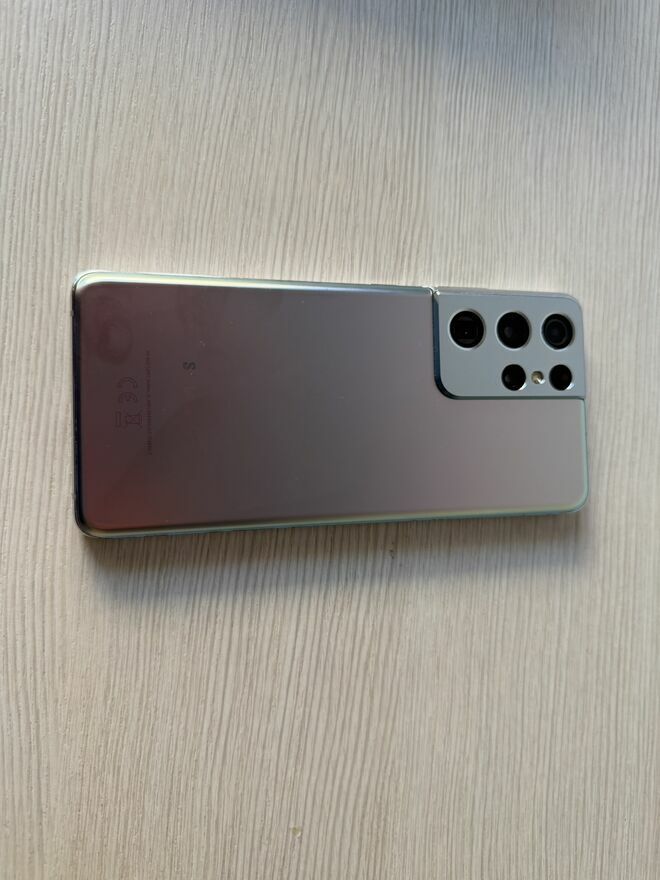 Sprzedam Samsung Galaxy S21 Ultra 5G. Telefon używany, sprawny, ekran bez pęknięć; normalne ślady codziennego użytkowania widoczne na zdjęciach.Uwaga: bateria trzyma słabo.