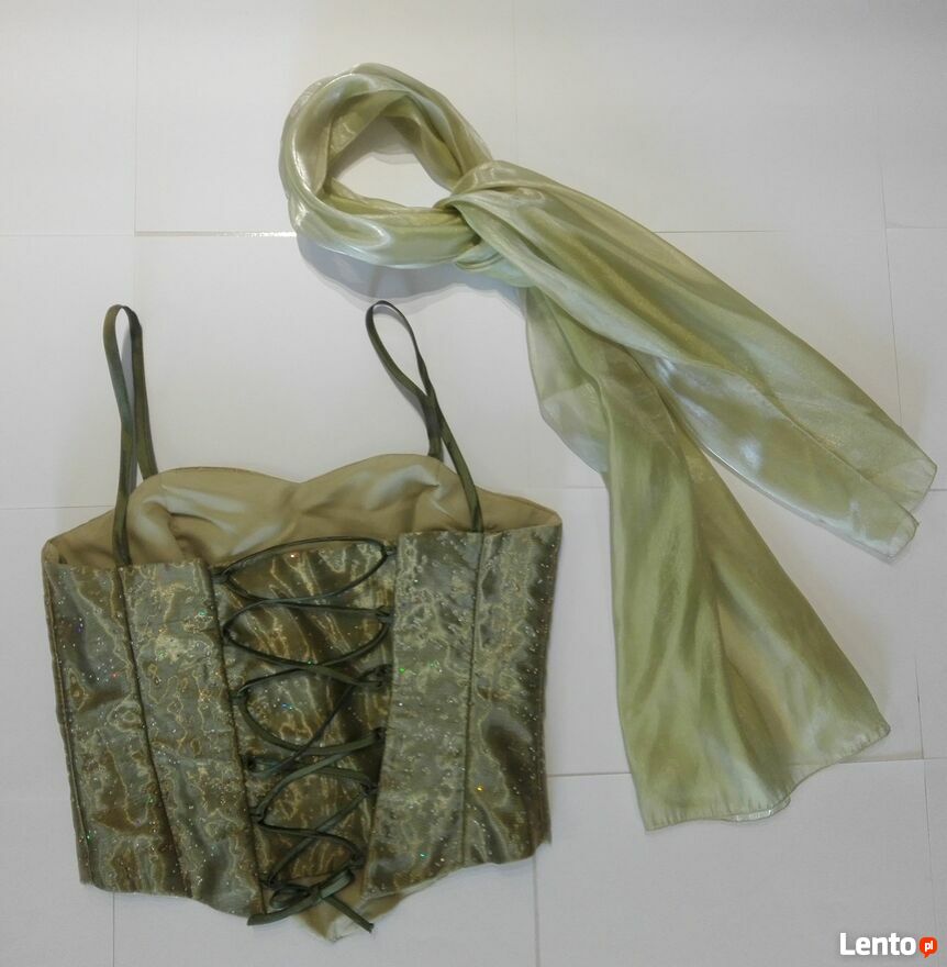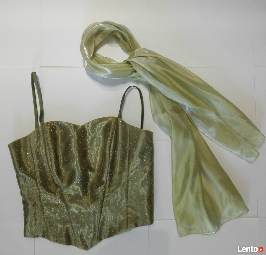 Sukienka rozmiar S(36), kolor zielony, gorset zdobiony brokatem, wiązanyz tyłu.