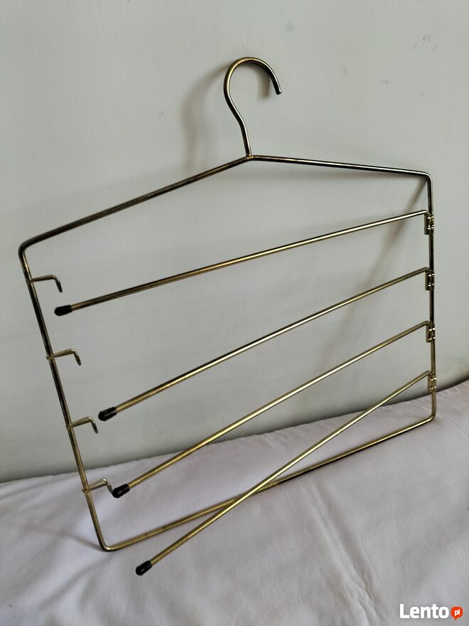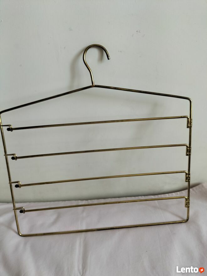 Do sprzedania bardzo ladny wieszak . Ma on nastepujace wymiary : wysokosc - 37 cm , dlugosc - 36 cm . Wieszak jest wykonany z mosiadzu . Idealnie nadaje sie on na spodnice , spodnie , apaszki , krawaty , itp. - jest zatem bardzo praktyczny . Wieszak jest w bardzo dobrym stanie , byl bardzo malo uzywany ( w jednym z wieszakow brakuje 1 koncowki ) . Polecam ! Naprawde warto ! Odbior we wlasnym zakresie . Cena wieszaka - 35 zl. Posiadam do sprzedania 2 jednakowe wieszaki , podana cena dotyczy 1 sztuki . Zainteresowane osoby prosze o kontakt telefoniczny pod numerem 695 - pokaż numer telefonu - pani Barbara . Zapraszam !Sprawdź zainteresowanie tym ogłoszeniem