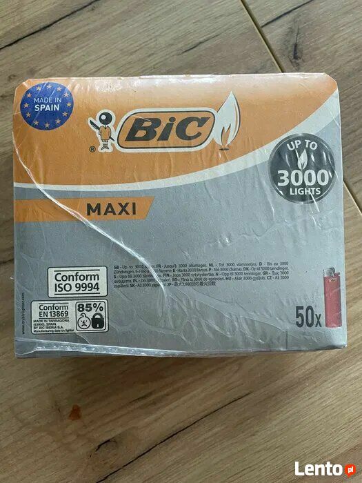Sprzedam zapalniczki BIC J26 MAXI CLASSIC (50 szt.)Wysokiej jakości zapalniczki francuskiej firmy BIC, napełnione gazem. Niezawodna zapalniczka zapewnia długą żywotność do 3000 odpaleń. Stalowa obudowa chroni przed wiatrem i przegrzaniem, a plastikowy korpus jest ultradźwiękowo spawany z resztą konstrukcji. Zapalniczka dostępna w kilku kolorach.