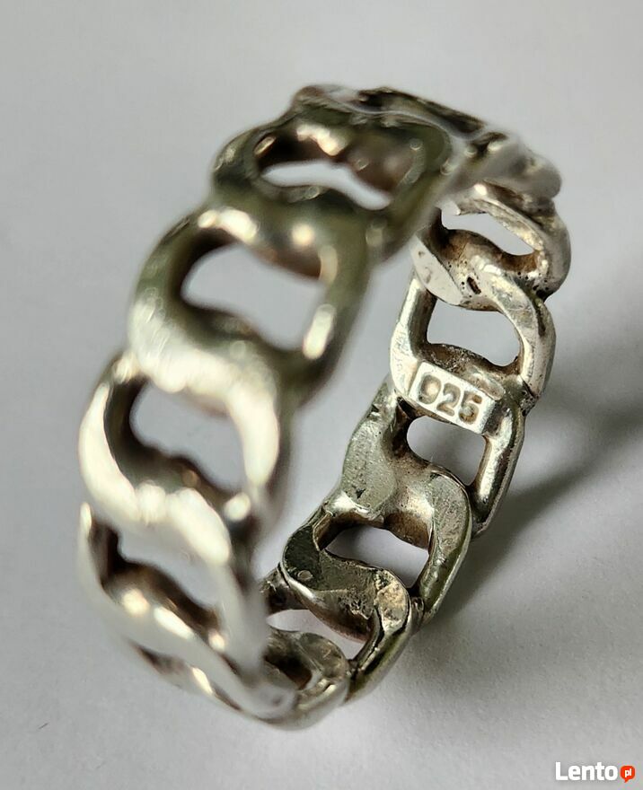 Srebrny pierścionek obrączka pancerka