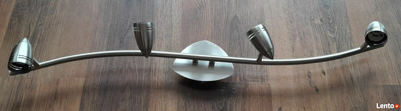 Do sprzedania posiadam srebrny żyrandol czteropunktowy. Stan bardzo dobry, wszystko sprawne i kompletne. Rodzaj żarówki: GU10.Obrotowe oprawki żarówek.
