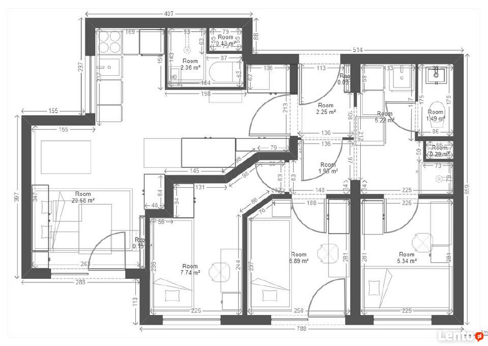 • 3 niezależne pokoje (wspólna łazienka, wspólna kuchnia, balkon w jednym z pokoi) – wynajem na pokoje.