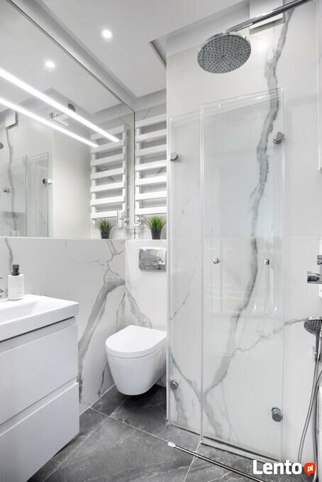 • pomysłowej łazienki (WC, kabina prysznicowa, umywalka)