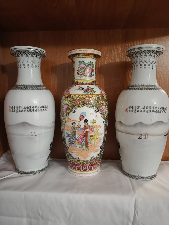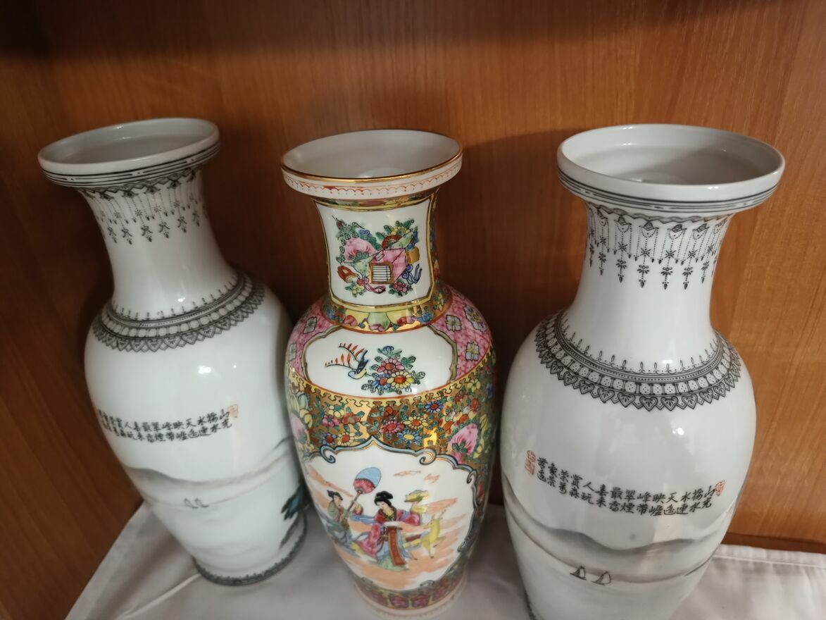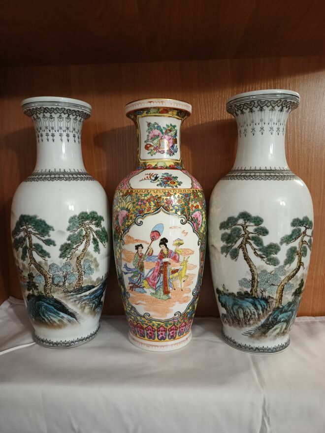 Witam sprzedam ręcznie malowane stare wazony z porcelany w stanie idealnym jak nowe, pochodzą z lat 60/70 importowane z Chin . Sprzedaję w całości wszystkie trzy sztuki ,najlepiej odbiór osobisty z wiadomych przyczyn, wysyłka może je uszkodzić.Wazony z tym wzorem są bardzo unikatowe,idealnie pasują do dekoracji wnętrza domu/mieszkania . W razie pytań proszę pisać poprzez formularz lub SMS .