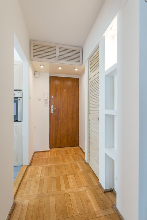 *Dobry rozkład mieszkania, do każdego z pomieszczeń wejścia z korytarza. Okna dużego pokoju i sypialni wychodzą na spokojną, ślepą ulicę Schillera, okno kuchni na zamknięte patio.