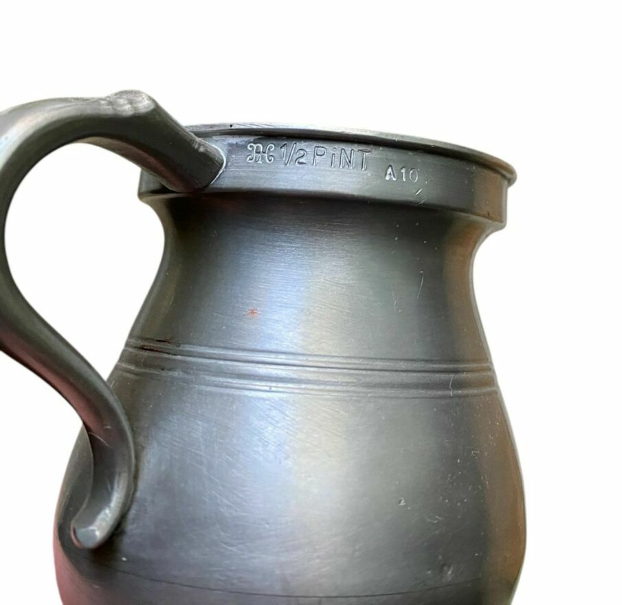 Stary cynowy kufel 1/2 pinta, z oznaczeniami