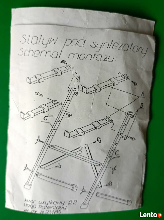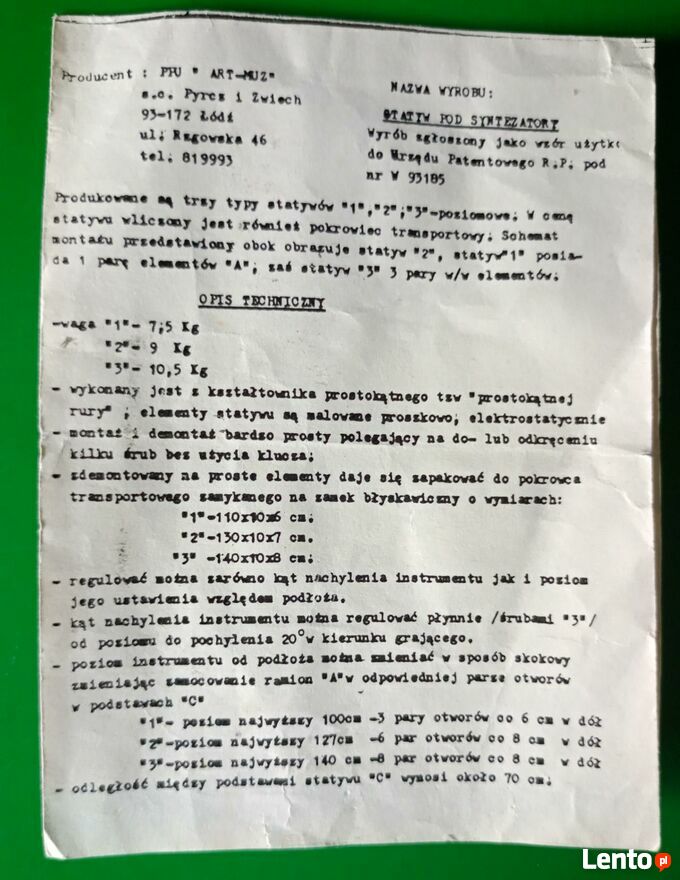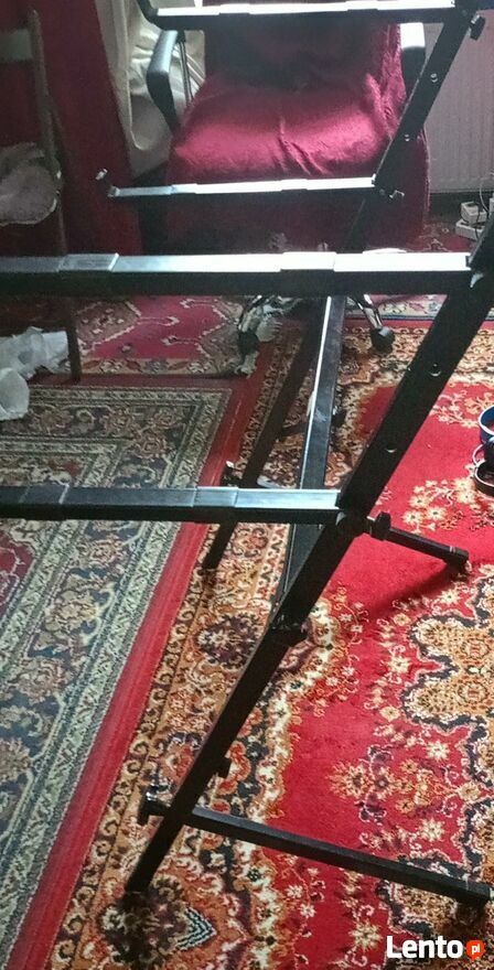 Statyw na dwa keyboardyPrzedmiotem sprzedaży jest profesjonalny statyw na dwa instrumenty klawiszowe, produkcji polskiej, zarejestrowany w Urzędzie Patentowym R.P. jako wzór użytkowy pod numerem W 93 185.