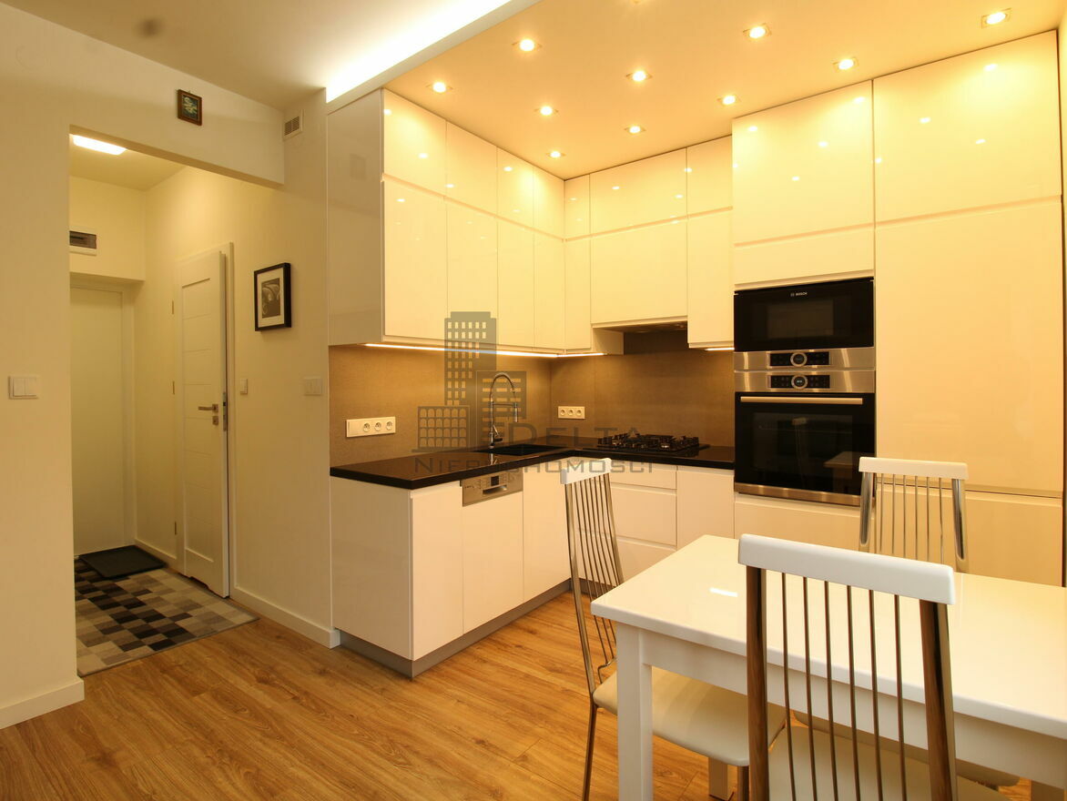 Kawalerka o wysokim standardzie, położona w przedwojennej, klimatycznej kamienicy zlokalizowanej w centralnej części Starego Żoliborza. Składa się z otwartej przestrzeni, oraz bardzo wygodnej, przemyślanej garderoby. W części kuchennej znajduje się nowoczesna w pełni wyposażona zabudowa. W skład , której wchodzi duża lodówka z zamrażalnikiem, czteropalnikowa płyta gazowa, zmywarka, mikrofalówka oraz piekarnik.W łazience zamontowana została nowoczesna, duża kabina prysznicowa z deszczownicą oraz liniowym podłogowym odpływem. W pojemnej szafie znalazło się miejsce na pralkę